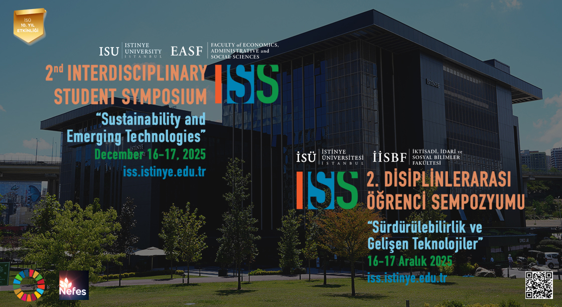 İstinye Üniversitesi İİSBF 2. Di̇si̇pli̇nlerarası Öğrenci̇ Sempozyumu, “ Sürdürülebilirlik ve Gelişen Teknolojiler” başlığı ile 16-17 Aralık 2025 tarihlerinde gerçekleşecektir. Uluslararası Sürdürülebilirlik Uygulama ve Araştırma Merkezi iş birliğinde düzenlenen sempozyum süresince üniversite bünyesindeki diğer Araştırma Merkezlerinin, hali hazırda okuyan öğrencilerin ve mezun öğrencilerimizin katılımları ile sürdürülebilirlik temasında çalıştaylar düzenlenecektir.